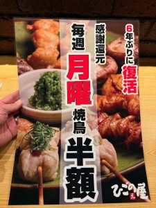 【毎週月曜日は感謝デー】焼き鳥半額‼️