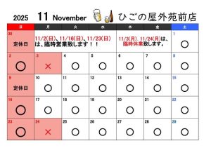 【外苑前×焼き鳥居酒屋】11月は変則営業です!