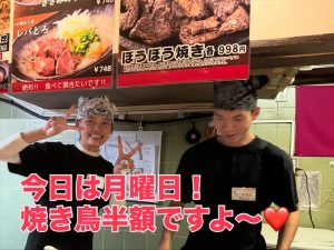 毎週月曜日、ひごの屋は全店焼き鳥半額でございます♪