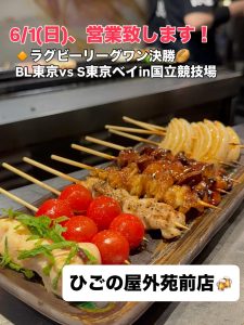 橄榄球决赛 x 外苑前居酒屋] 6 月 1 日(周日),HIGONO 外苑前店将临时营业!